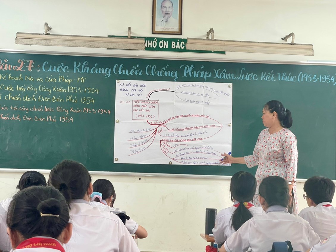 Với chuyên đề Lịch sử lớp 9, thông qua bài học Cuộc kháng chiến chống Pháp xâm lược kết thúc (1953 - 1954), với sự nhạy bén trong kinh nghiệm giảng dạy và áp dụng Sơ đồ tư duy trong bài học, cô Thúy Nga đã mang lại kiến thức vững vàng cho các em học sinh lớp 9A1.