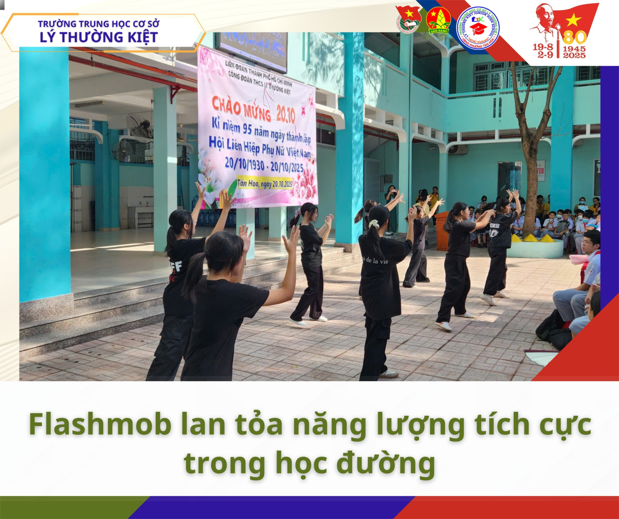Sáng ngày 20/10/2025, trong không khí hân hoan của ngày Phụ nữ Việt Nam, Trường THCS Lý Thường Kiệt đã tổ chức chuyên đề “Flashmob – Lan tỏa năng lượng tích cực trong học đường” đầy sôi nổi và ý nghĩa.