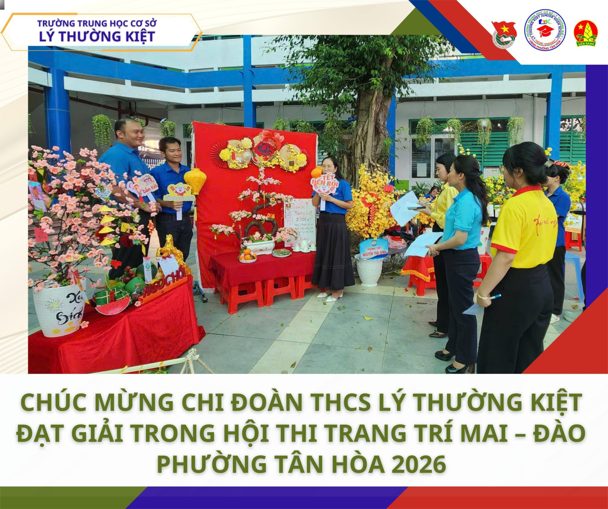 Tham gia tại Bảng A: Trang trí mai – đào, đội thi của Chi đoàn trường THCS Lý Thường Kiệt gồm 03 thành viên đã mang đến một tác phẩm đầy tính nghệ thuật và tâm huyết. Vượt qua nhiều đội thi mạnh, Chi đoàn nhà trường đã mang về Giải C chung cuộc.