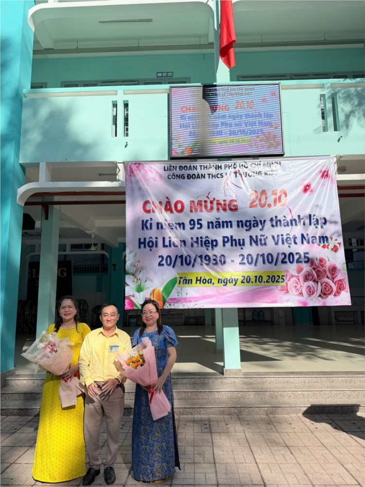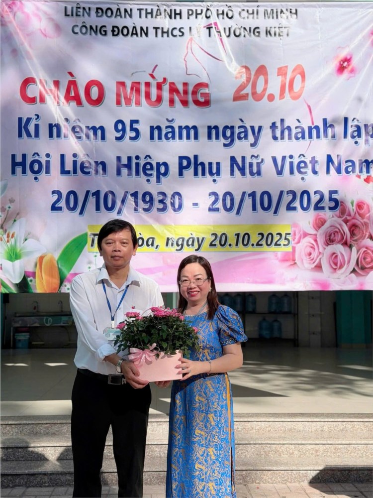 Đồng thời, thầy Lê Quang Huân cũng đã gửi bó hoa tươi đến cô Ngô Nguyễn Thiên Trang và cô Nguyễn Thị Thu Hồng – Chủ tịch Công đoàn, thể hiện tình cảm chân thành, sự trân quý dành cho những người phụ nữ tận tâm với nghề, hết lòng vì học sinh thân yêu.