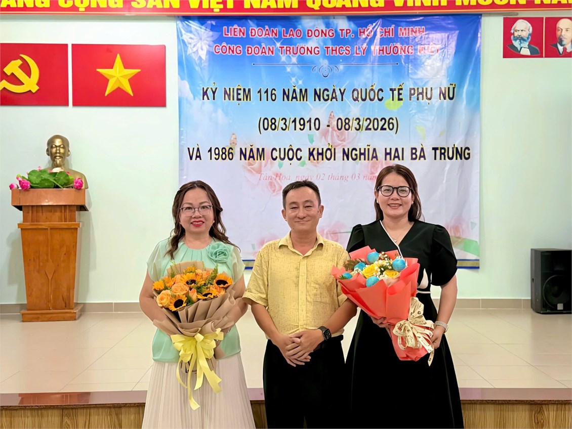 Trong không khí hân hoan của tháng Ba, Trường THCS Lý Thường Kiệt đã tổ chức chuỗi hoạt động ý nghĩa chào mừng Ngày Quốc tế Phụ nữ 8/3 (08/3/1910 – 08/3/2026) và kỷ niệm Khởi nghĩa Hai Bà Trưng. Đây không chỉ là dịp tôn vinh vẻ đẹp và vai trò của phụ nữ mà còn là cơ hội để tập thể nhà trường thêm gắn kết, lan tỏa niềm vui và tinh thần đoàn kết.
