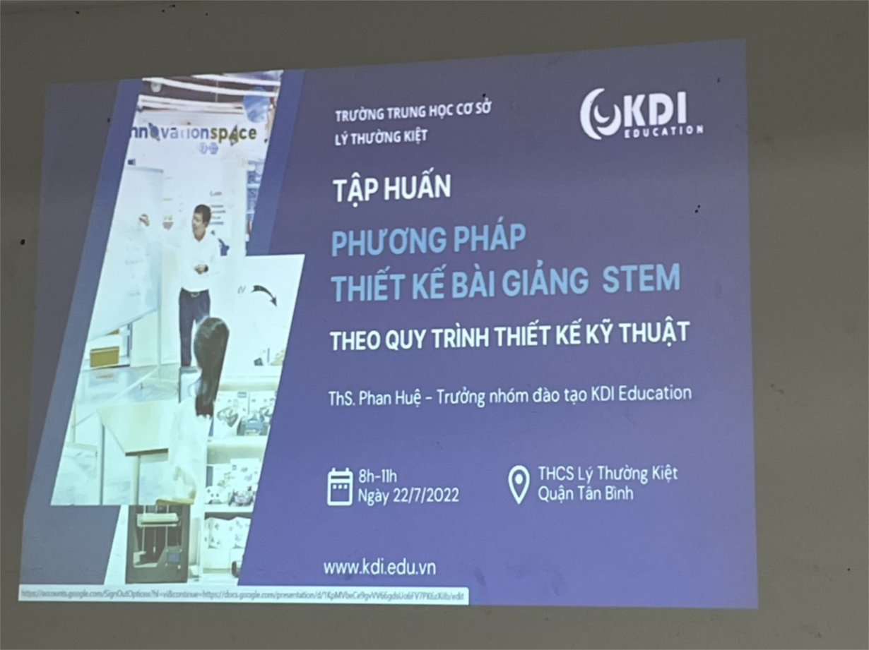 Sáng ngày 22 tháng 7 năm 2022, công ty KDI Education đã đồng hành cùng trường THCS Lý Thường Kiệt tổ chức buổi tập huấn về Giáo dục Stem (chương trình giảng dạy dựa trên ý tưởng trang bị cho người học những kiến thức, kĩ năng liên quan đến các lĩnh vực) cho toàn thể giáo viên nhà trường. Giáo dục STEM là chữ viết tắt của các từ Science (Khoa học), Technology (Công nghệ), Engineering (Kỹ thuật) và Mathematics (Toán học) thông qua không gian sáng chế là một giải pháp giáo dục tối ưu. Ở đó, KDI Education cung cấp kiến thức, rèn luyện kỹ năng và nuôi dưỡng phẩm chất của nhà sáng chế.