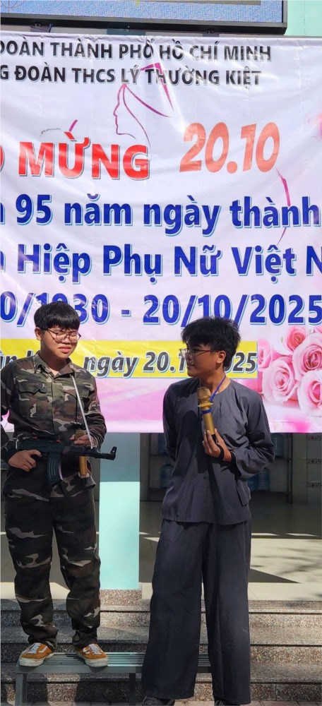 🌺 Sáng ngày 20/10, trong tiết sinh hoạt dưới cờ đầu tuần, Chi đội 9A2 – Trường THCS Lý Thường Kiệt đã tổ chức buổi sinh hoạt chuyên đề “Theo bước chân những người anh hùng” tháng 10, với nội dung giới thiệu thân thế, sự nghiệp cách mạng của anh hùng liệt sĩ Nguyễn Văn Trỗi và tiểu phẩm tái hiện giây phút anh hiên ngang ra pháp trường.