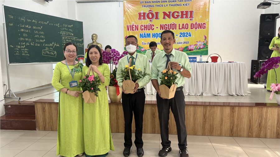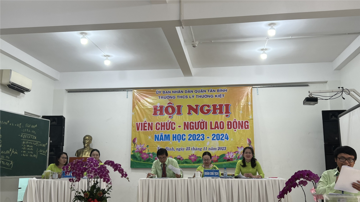 Hội nghị cán bộ công chức, viên chức và người lao động năm học 2023- 2024 của trường THCS Lý Thường Kiệt đã thành công tốt đẹp. Hội nghị đã thông qua Nghị quyết với các nội dung: công tác chính trị tư tưởng; công tác thi đua; sự phối hợp với thủ trưởng cơ quan đơn vị với BCH công đoàn, đồng thời kêu gọi toàn thể CBVCNLĐ phát huy những thành tích đã đạt được, phấn đấu thực hiện thắng lợi nhiệm vụ chính trị, tích cực đóng góp công sức và trí tuệ xây dựng Nhà trường ngày một vững mạnh.