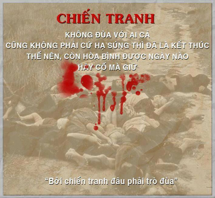 Trên khắp Tổ quốc mình, địa phương nào cũng có cha mẹ, vợ, con liệt sỹ… đó là đau thương, là sự tàn khốc của chiến tranh chúng ta cần phải tránh bằng mọi giá. “Bởi chiến tranh không phải trò đùa” nên chúng ta cần nhận thức rõ ràng, rằng nếu để xảy xung đột, chiến tranh, với lòng yêu nước nồng nàn, với ý chí quật cường của cả dân tộc cùng sự ủng hộ của nhiều nước trên thế giới, chúng ta sẽ chiến thắng, nhưng hậu quả và cái giá phải trả chắc chắn cũng không hề nhỏ.
